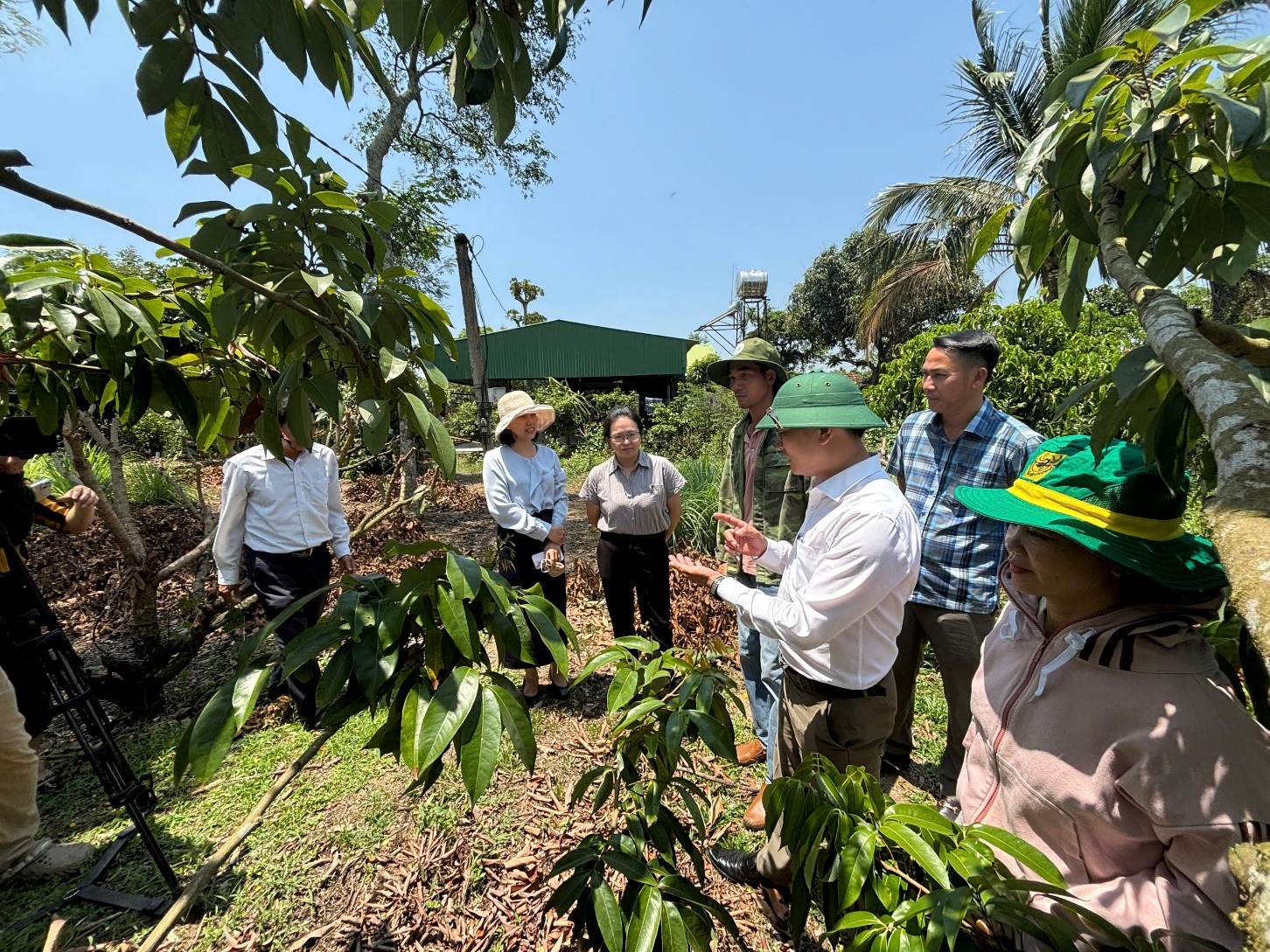 Ảnh: Đoàn làm việc tại UBND phường Buôn Hồ và khảo sát thực địa mô hình trồng thâm canh sầu riêng theo GAP.