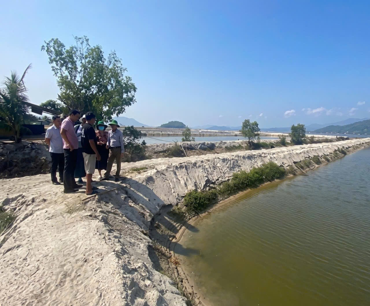 Ảnh: Đoàn khảo sát thực địa mô hình nuôi Cá Rô phi trong ao và Hải sâm tại phường Sông Cầu và phường Hòa Hiệp.