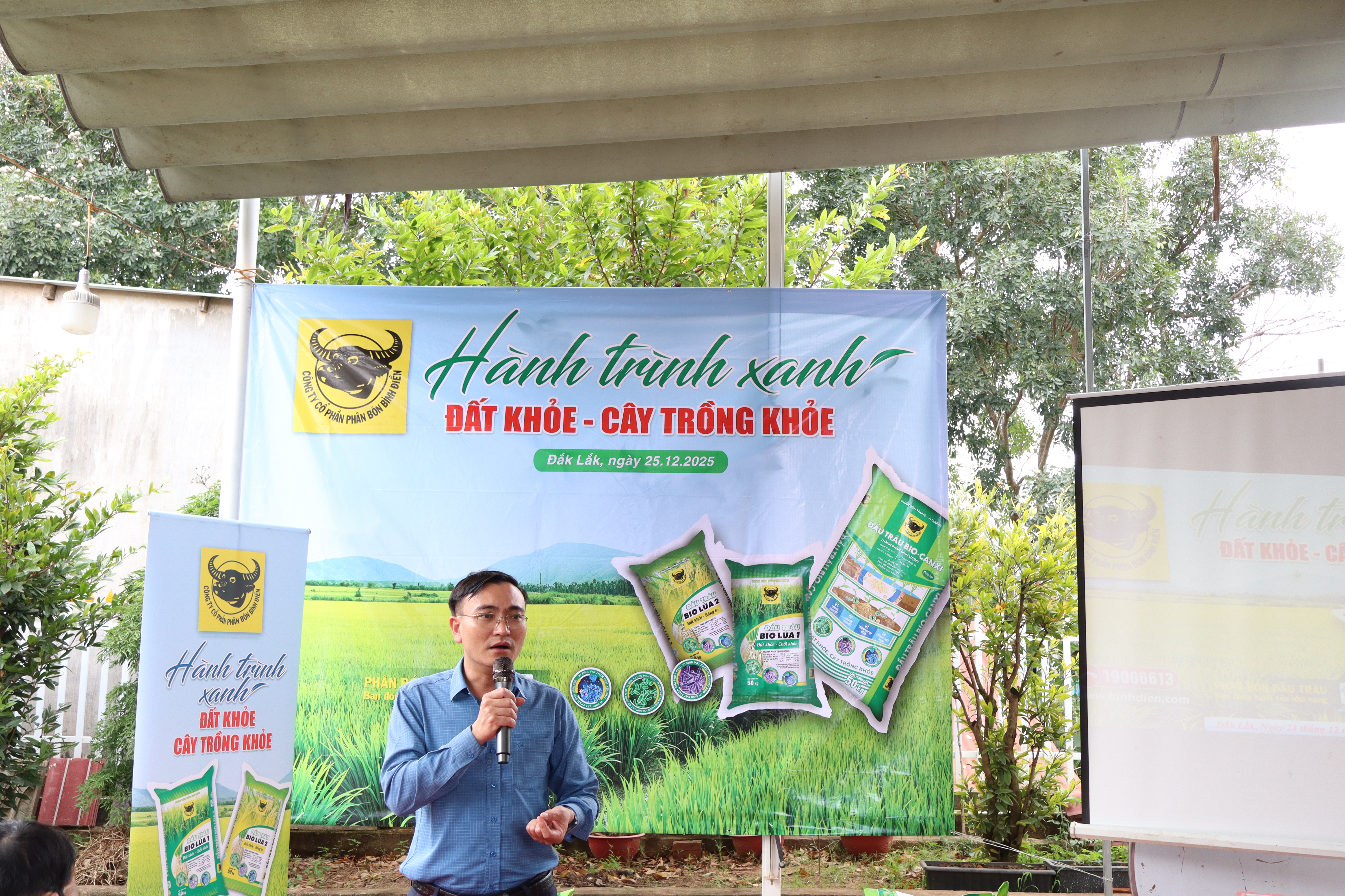 Phát biểu khai mạc Ông Nguyễn Văn Duy, Trưởng vùng khu vực Tây nguyên, Công ty cổ phần phân bón Bình Điền chia sẻ: "Hành trình xanh là một chặng đường mà cả ngành Nông nghiệp đang hướng đến, hành trình khôi phục sức sống cho đất, giúp đất khỏe giàu dinh dưỡng, tơi xốp, tăng vi sinh vật, từ đó giúp cây trồng khỏe, bền bỉ, chống chịu sâu bệnh tốt hơn và cho chất lượng nông sản tốt hơn".