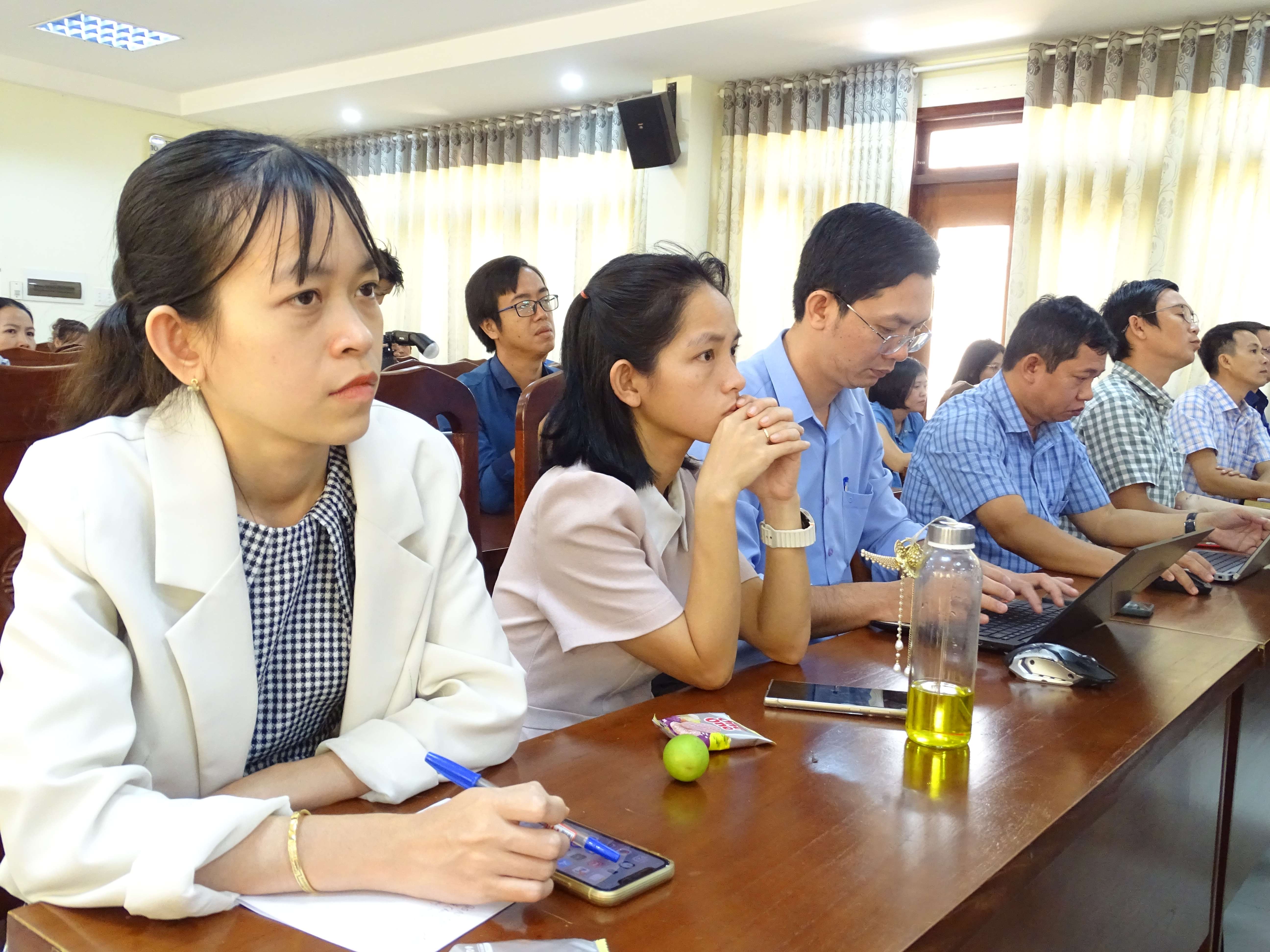 Công chức, viên chức chăm chú theo dõi nội dung tập huấn trực tiếp tại Hội trường SNN&MT