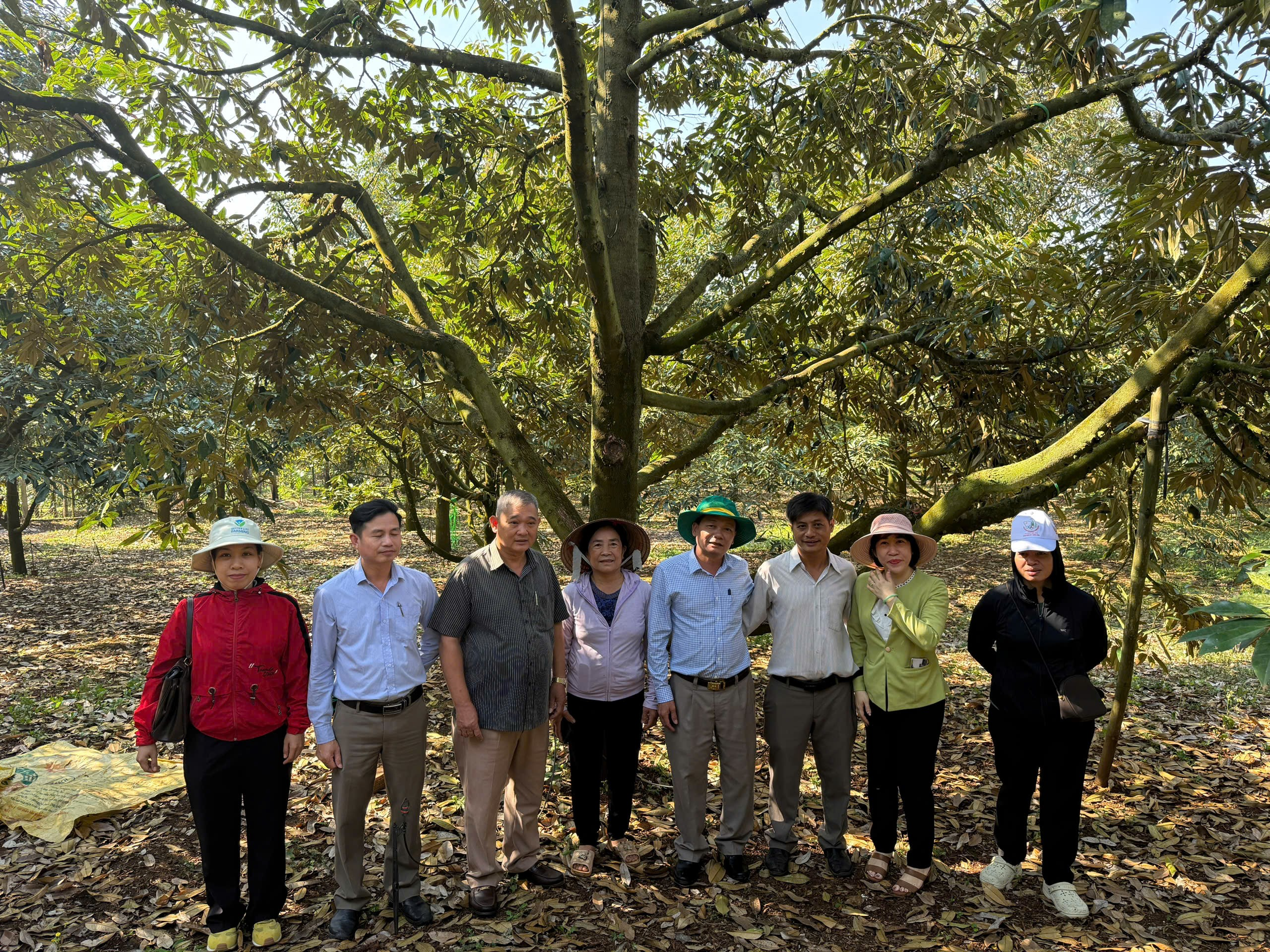 Ảnh: Đoàn làm việc tại UBND phường Buôn Hồ và khảo sát thực địa mô hình trồng thâm canh sầu riêng theo GAP.